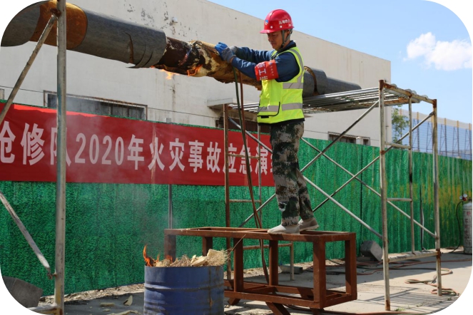 作業(yè)人員使用現(xiàn)場滅火器進行滅火