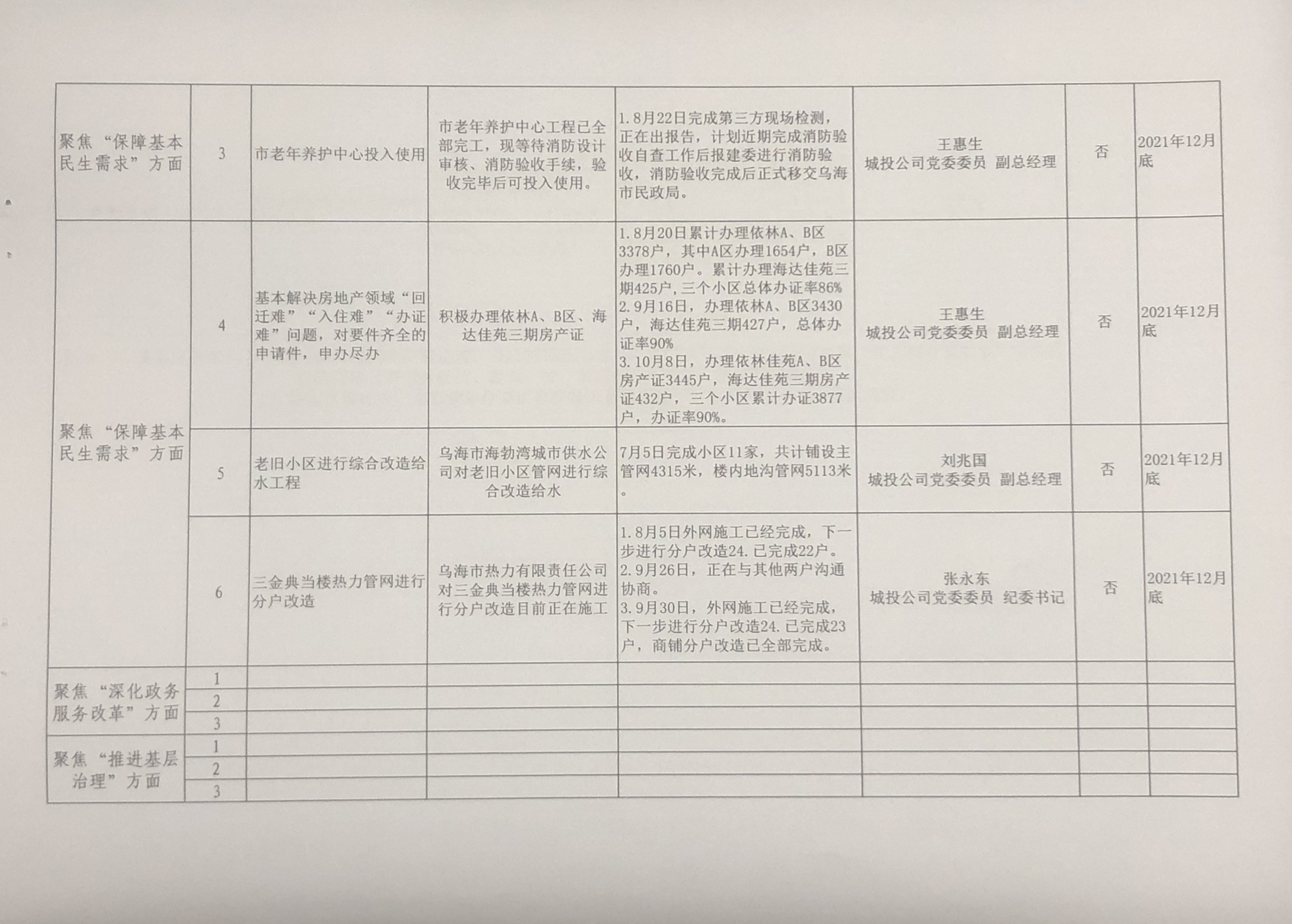 烏海市城市建設(shè)投資集團(tuán)有限責(zé)任公司重點(diǎn)民生項(xiàng)目進(jìn)展清單