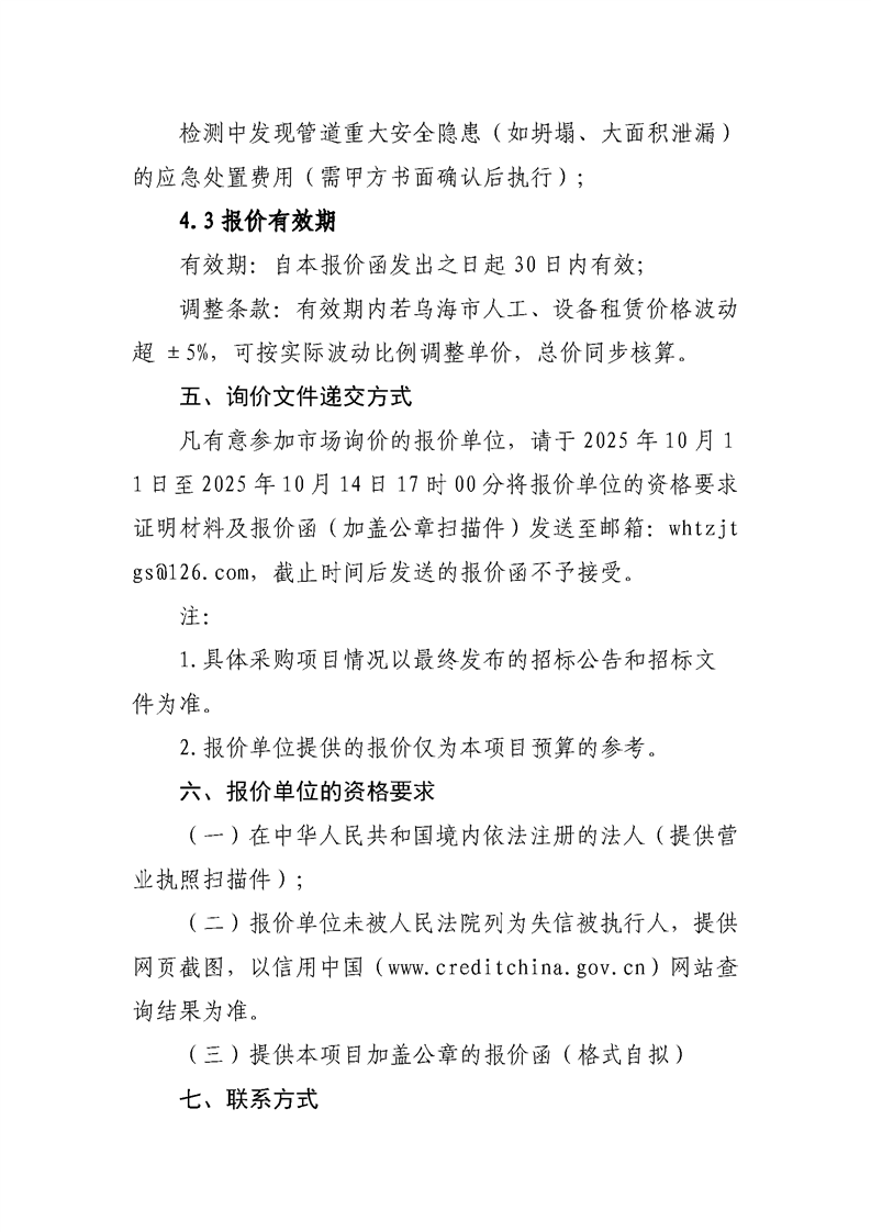 - 2025-07-17烏海市濱河城市運營服務有限責任公司電梯維保服務商采購詢價文件